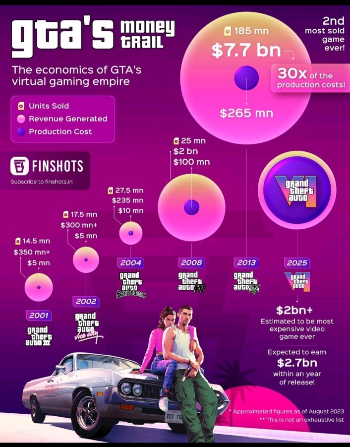 From Vice City to a $7.7 billion empire: The incredible evolution of GTA's financial success. With GTA VI on the horizon, Rockstar's virtual crime saga is set to break even more records. Who's ready for another wild ride through the criminal underwor