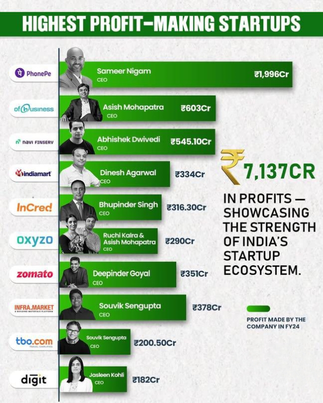 This year, India’s leading startups generated ₹7,137 Cr in PROFITS. Not valuation figures. Not fleeting buzz. Real, tangible profit. This isn’t solely about statistics— It signifies a fundamental change in India’s startup landscape. Profitability i