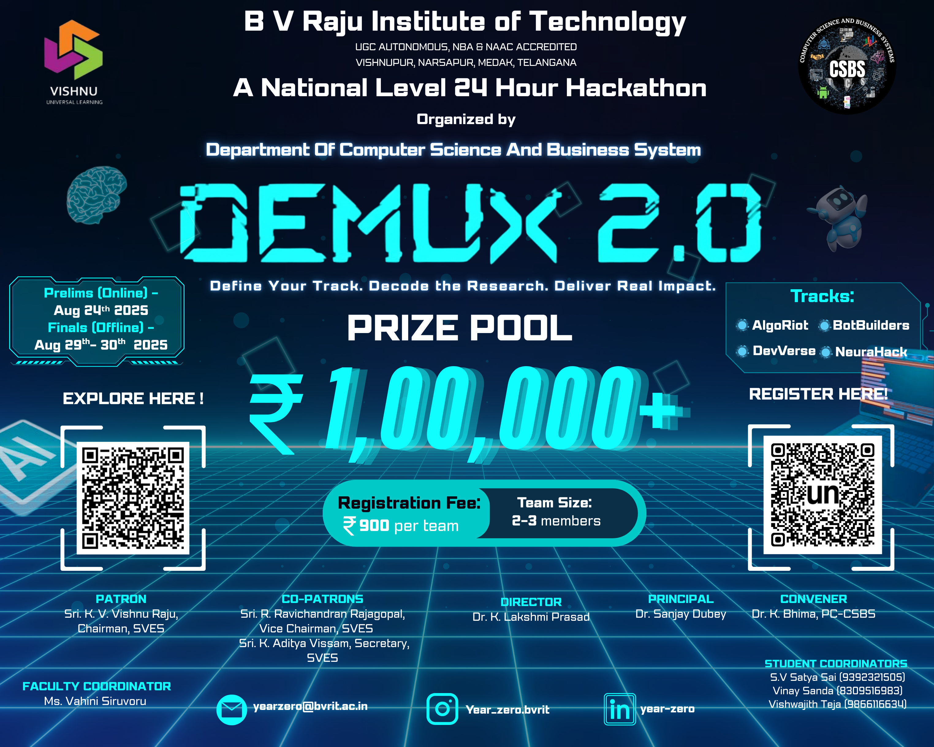 Hello, I'm Aishwarya Munagala, Founder of VAYOU (FinTech Empire), CTO of Brandelize, and Core Organizer of DEMUX 2025 — India’s most elite tech hackathon. 🔥 DEMUX 2025 – Where Disruptors Are Born Presented by BVRIT Narsapur. This isn’t a fest.