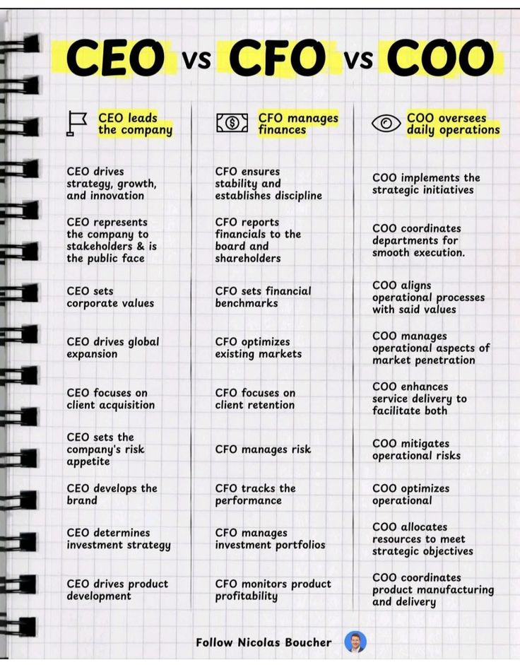 Businesses develop when there are strong CEO CFO COO All three are main pillars for business growth as one sees the future one plans with the current situation and the other manages the workforce with the plans. CFO not only manages finance but als