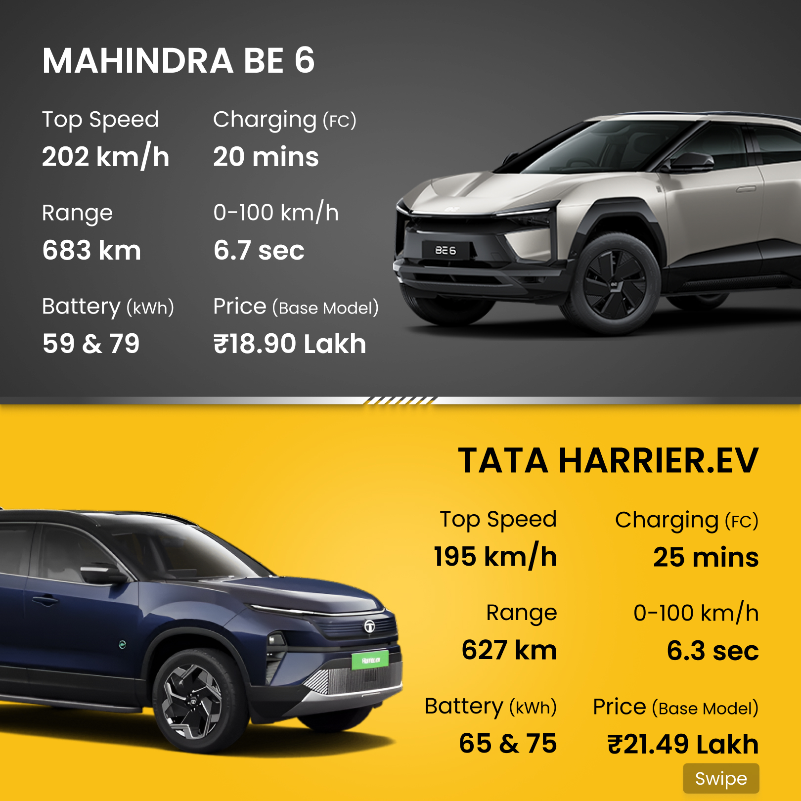 Tata Harrier EV vs Mahindra BE 6 โ Electric SUV Showdown! Two bold SUVs. One electric battlefield. Hereโs how they stack up: Mahindraโs got the speed & price. Tataโs got the power & premium punch. Which one are you backing in the EV SUV battle? #T