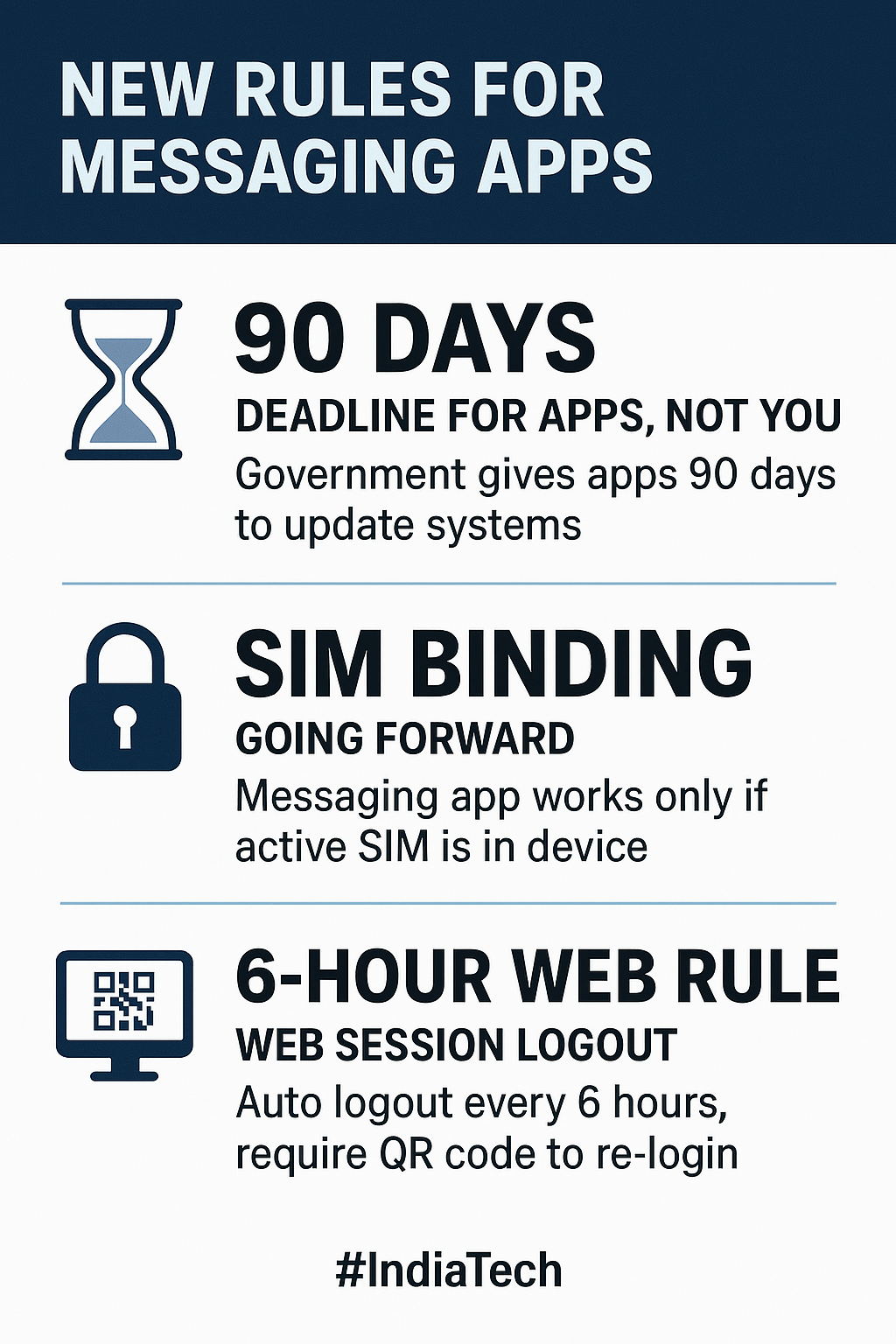 The Department of Telecommunications (DoT) has issued a new order to apps like WhatsApp, Telegram, and Signal to prevent fraud. 1. The "90 Days" is a Deadline for Apps, Not You ⏳ The government has given these companies 90 days to update their syste