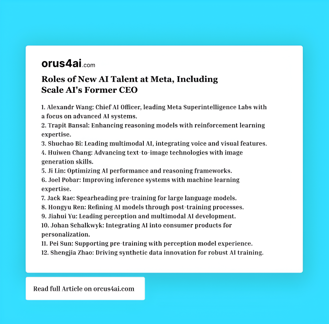 Roles of New AI Talent at Meta, Including Scale AI's Former CEO READ: https://orcus4ai.com/Roles-of-New-AI-Talent-at-Meta-Including-Scale-AI's-Former-CEO_ar=030