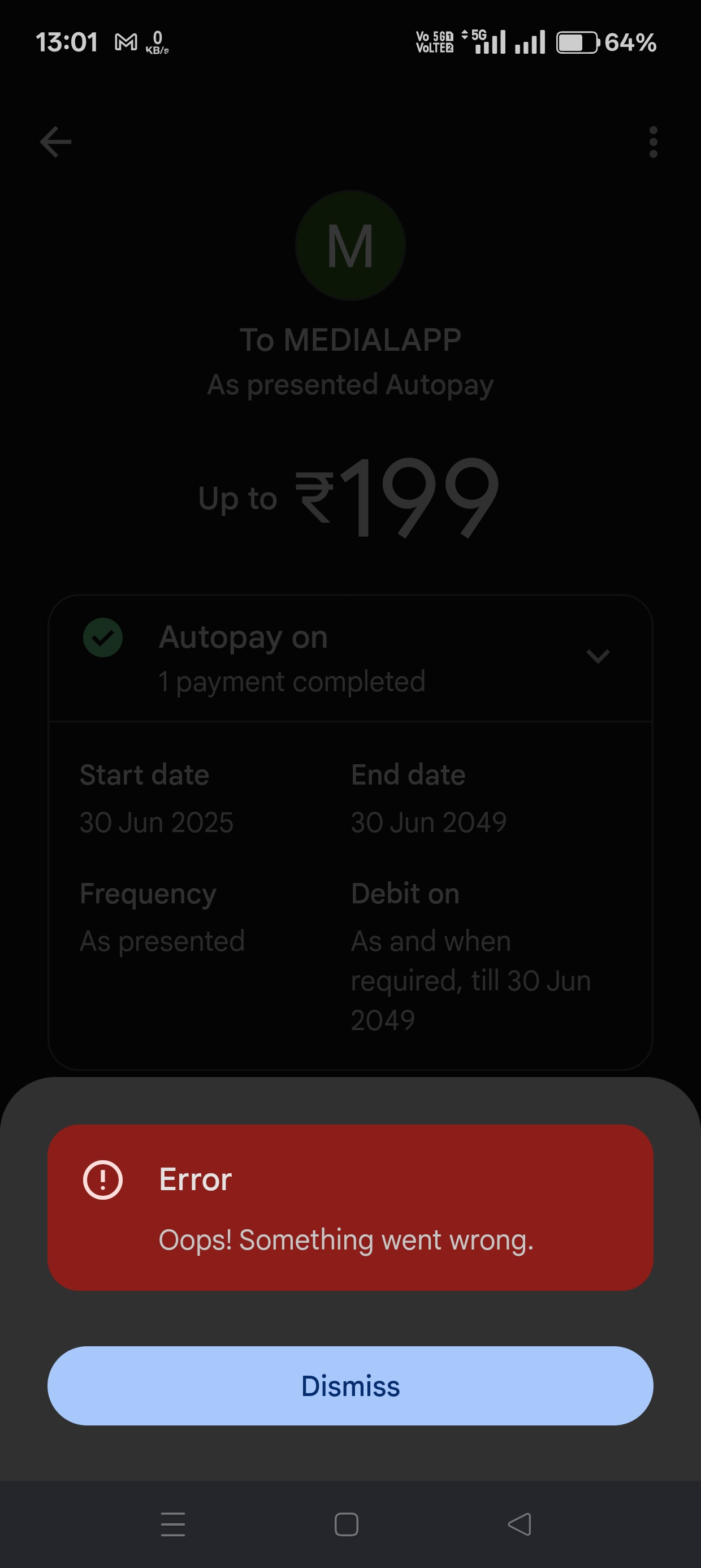 Hello Medial Team, I had taken only a one-month subscription. The AutoPay was enabled by mistake, due to which the amount for the second month was deducted automatically. I have now completely disabled the AutoPay. However, the ₹89 amount has already