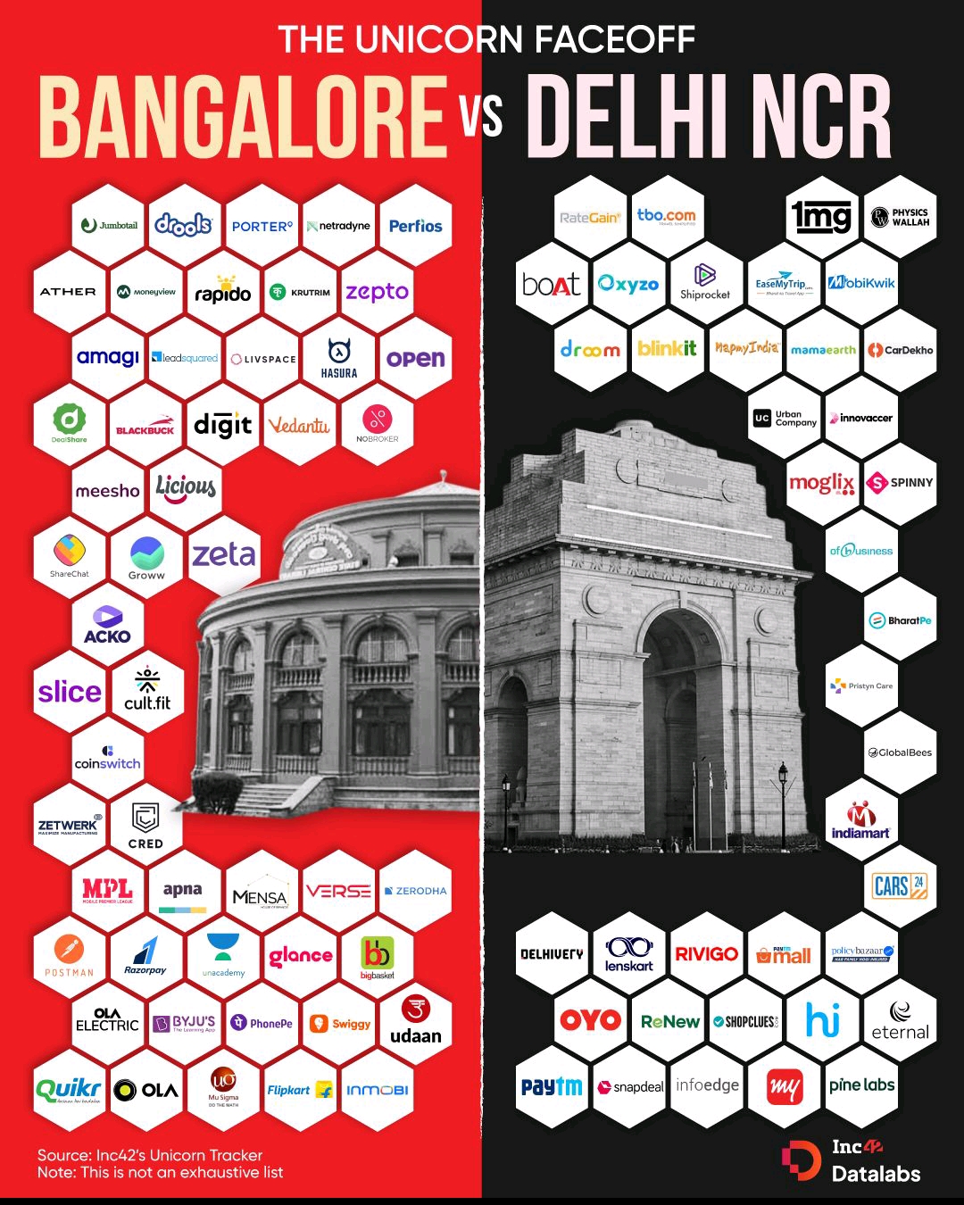 The Unicorn Faceoff: Bangalore vs Delhi NCR 🔥 Who will lead India's next wave of innovation-Bangalore's tech titans or Delhi NCR's consumer champions?