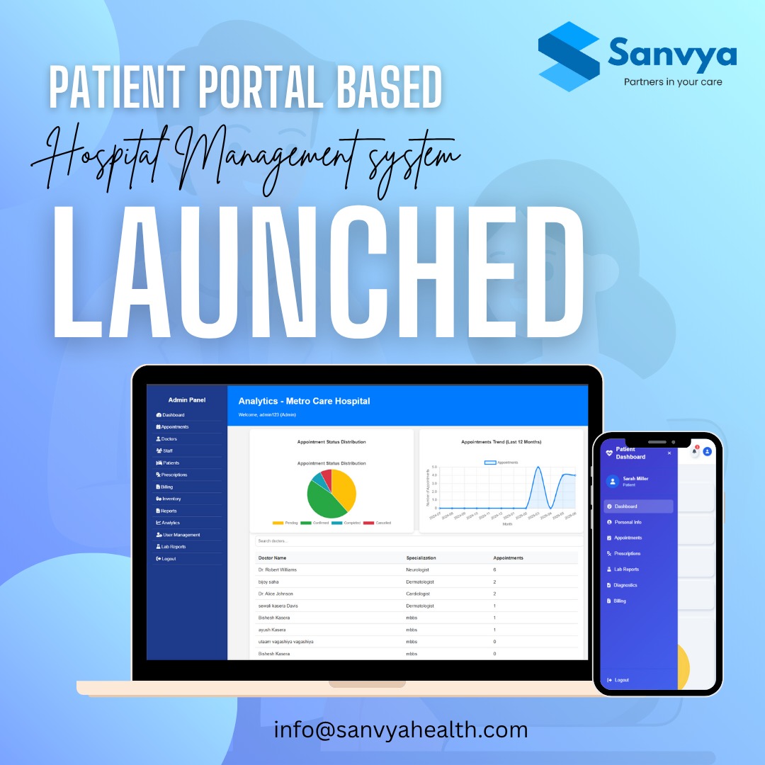 Launched Our Hospital management software with Patient Portal And Ecosystem For the Hospital industry. sanvya Hospital Ecosystem. via Sanvya Health Private Limited info@sanvyahealth.com