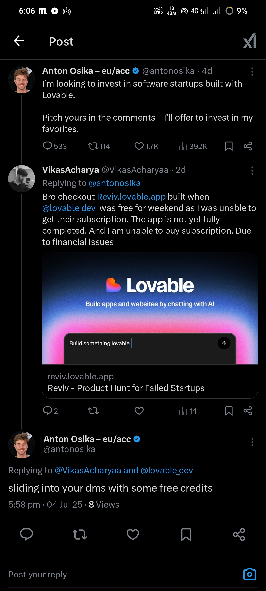 ๐ช๐ต๐ฒ๐ป ๐ฌ๐ผ๐โ๐ฟ๐ฒ ๐๐ฟ๐ผ๐ธ๐ฒ ๐ฏ๐๐ ๐ฆ๐๐ถ๐น๐น ๐๐๐ถ๐น๐ฑ๐ถ๐ป๐ดโฆ ๐ฎ๐ป๐ฑ ๐๐ต๐ฒ ๐ฅ๐ถ๐ด๐ต๐ ๐ฃ๐ฒ๐ผ๐ฝ๐น๐ฒ ๐ก๐ผ๐๐ถ๐ฐ๐ฒ ! Honestly, this still feels surreal. I built Reviv when Lovable was free for that weekend back then I was completely broke and