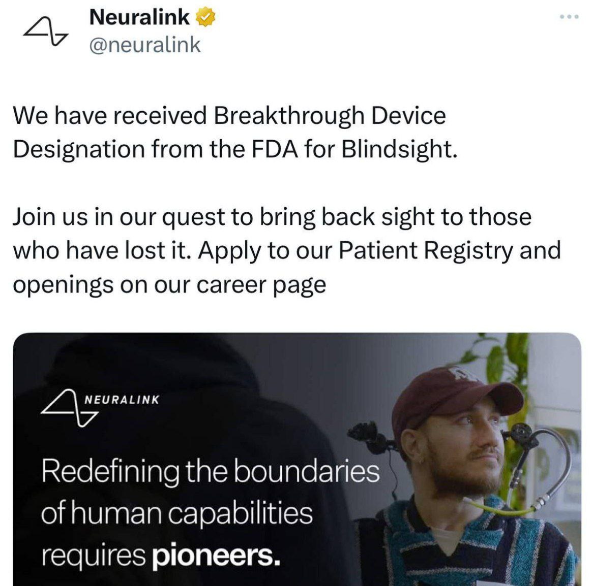 โก๏ธ Elon Musk Cures Blindness โ his Neuralink has released a revolutionary device called Blindsight, capable of restoring vision even if you were born blind. The U.S. Department of Health is shoked by the deviceโs capabilities. It attaches directly t