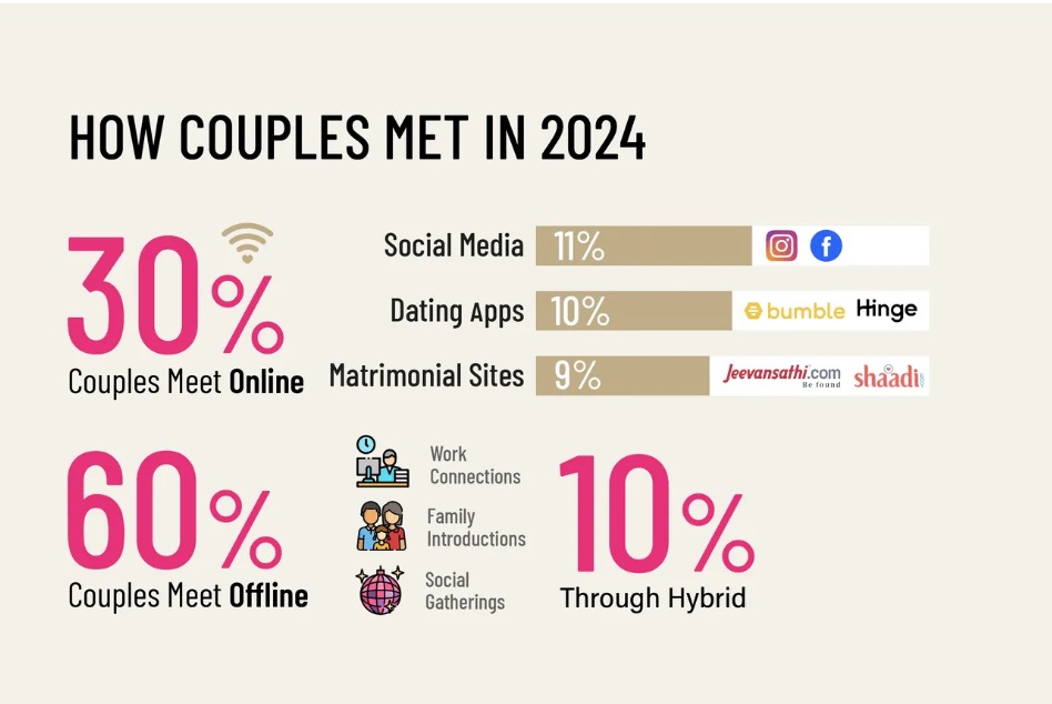 Looks like Social Media will replace Matrimony Site ๐ ๐ฑ 30% met online (Social Media, Dating Apps, Matrimonial Sites) ๐ค 60% met offline (Work, Family, Social Gatherings) ๐ 10% through a mix of both! Where did you meet your partner? #Relation