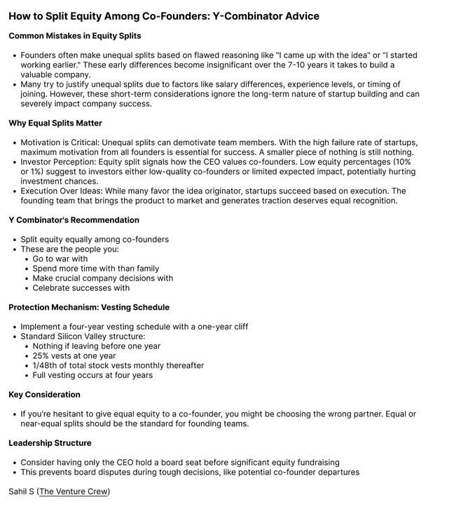 Y-Combinator Advice: How to Split Equity Among Co-Founders