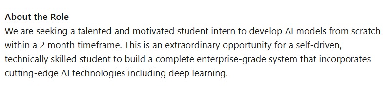 lol really i mean bro ai model from scratch within two months for intern ?? I don't think so PPL know how hard it is to make ai model not wrapping