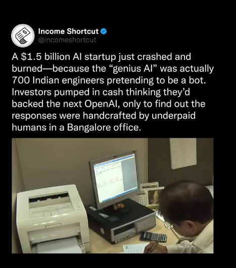 This is what happens when you try to replace AI with Humans....๐ Even MICROSOFT funded them. https://news.ycombinator.com/item?id=44169759&utm