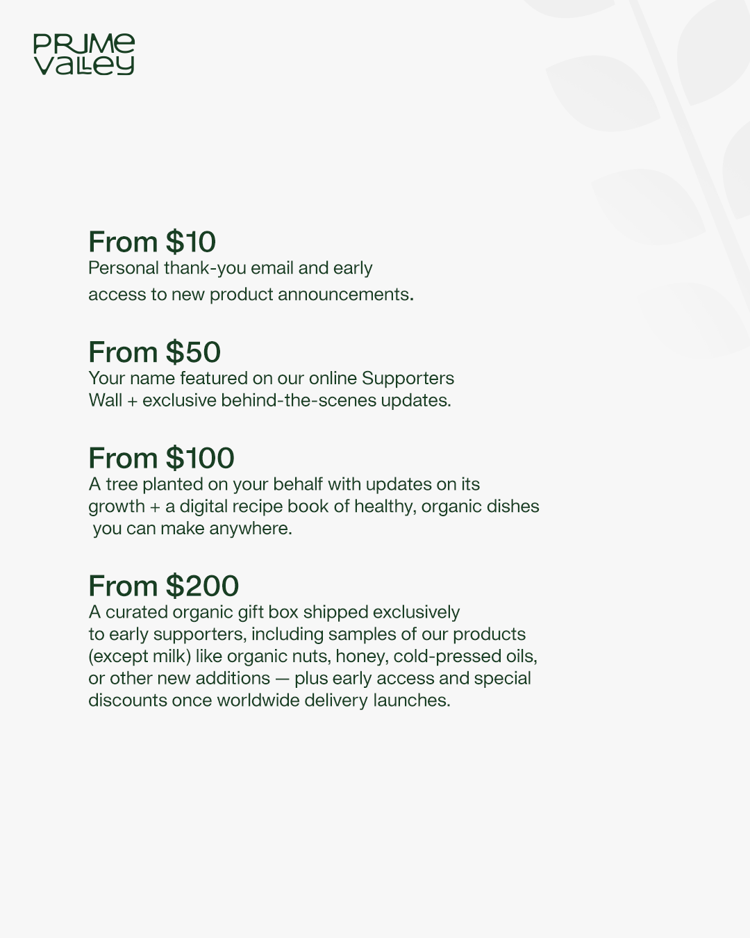 Introducing Primevalley! We’re pre launch crowdfunding to bring organic, eco-friendly products to you — fresh milk, nuts, honey & more. Support us today!