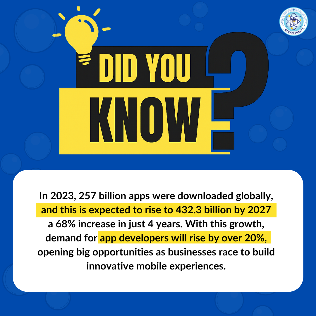 The future of mobile applications is booming! From social apps to smart tools, the world is tapping into mobile like never before. The need for skilled app developers is skyrocketing. From startups to global brands, everyone is on the lookout for creative minds who can build powerful mobile applications, opening up exciting possibilities for those who want to explore, create, or simply understand the tech behind everyday experiences.