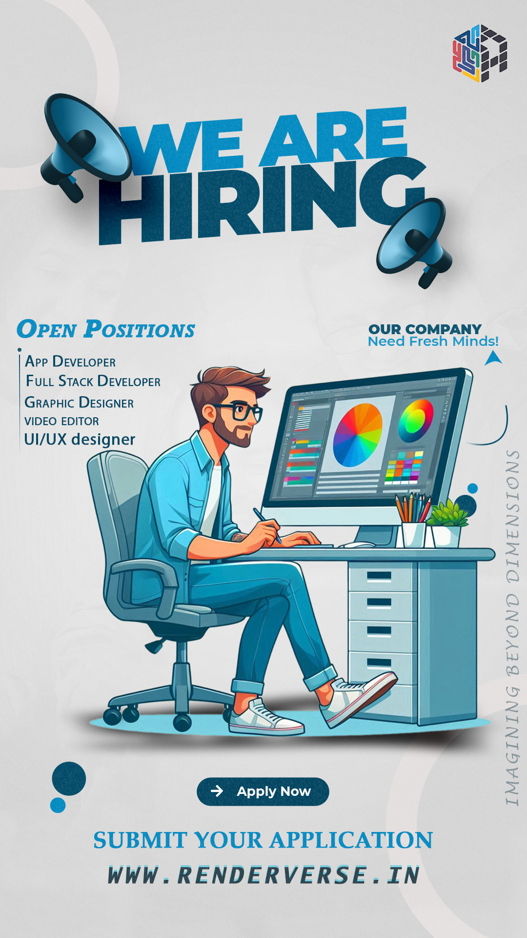 Contract-Based Opportunities at Renderverse Pvt. Ltd. Renderverse Pvt. Ltd. is hiring skilled professionals for exciting project-based roles! Open Positions: UI/UX Developer App Developer Full Stack Developer Graphics Designer Video Editor What We’re