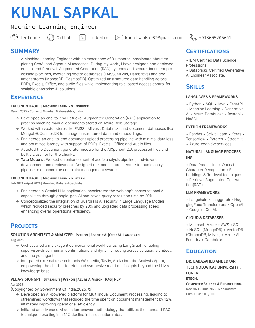 Hi guys , I am looking for a job switch. I am currently serving Exponentia AI as a Machine Learning Engineer. I am open to Generative AI Engineer/Data Scientist roles . I would appreciate your support. I any openings available kindly reach out to me.