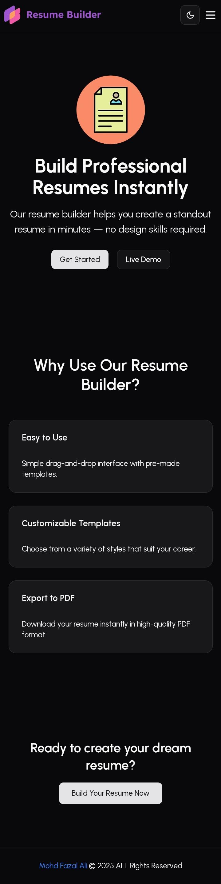 🚀 Just dropped my new project — Resume Builder 🧑💻✨ Built with the MERN stack, this app lets you create stunning resumes in minutes! 🔥 Drag & drop templates 🧩 Custom styles 📄 Instant PDF export No design skills needed — just focus on your futu