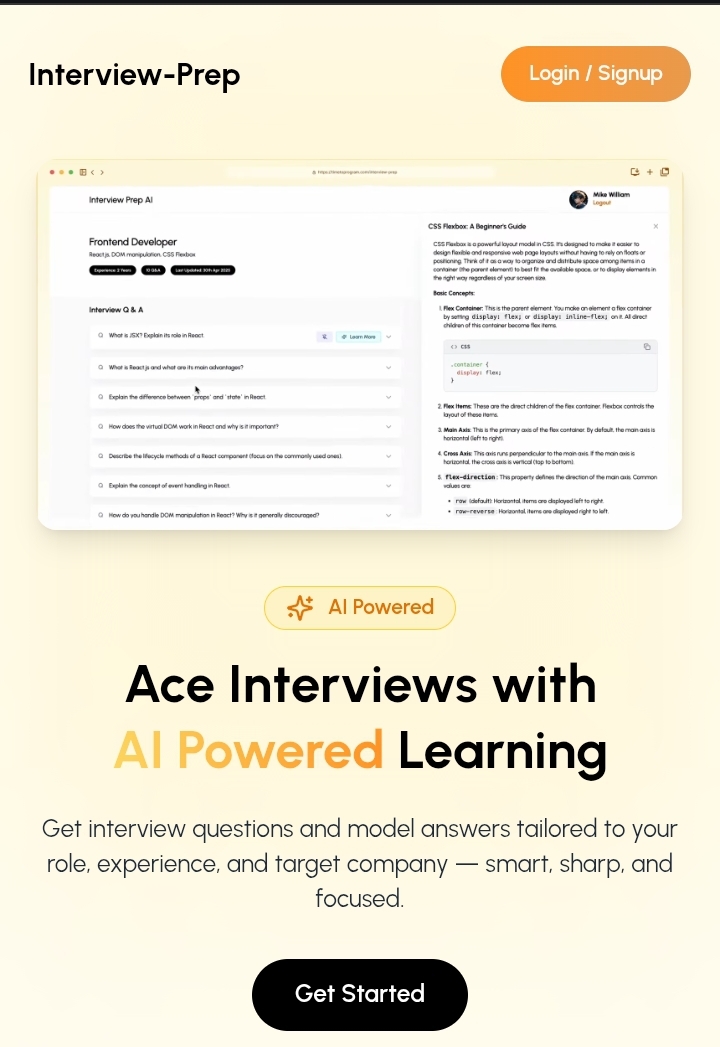 🚀 Just launched my latest project — Interview-Prep 🧠💼 Built with the MERN stack, this app empowers users to craft and manage custom interview questions with ease! 🔥 AI-powered question generation 📝 Topic-based filtering 🧩 Easy-to-use dashboard