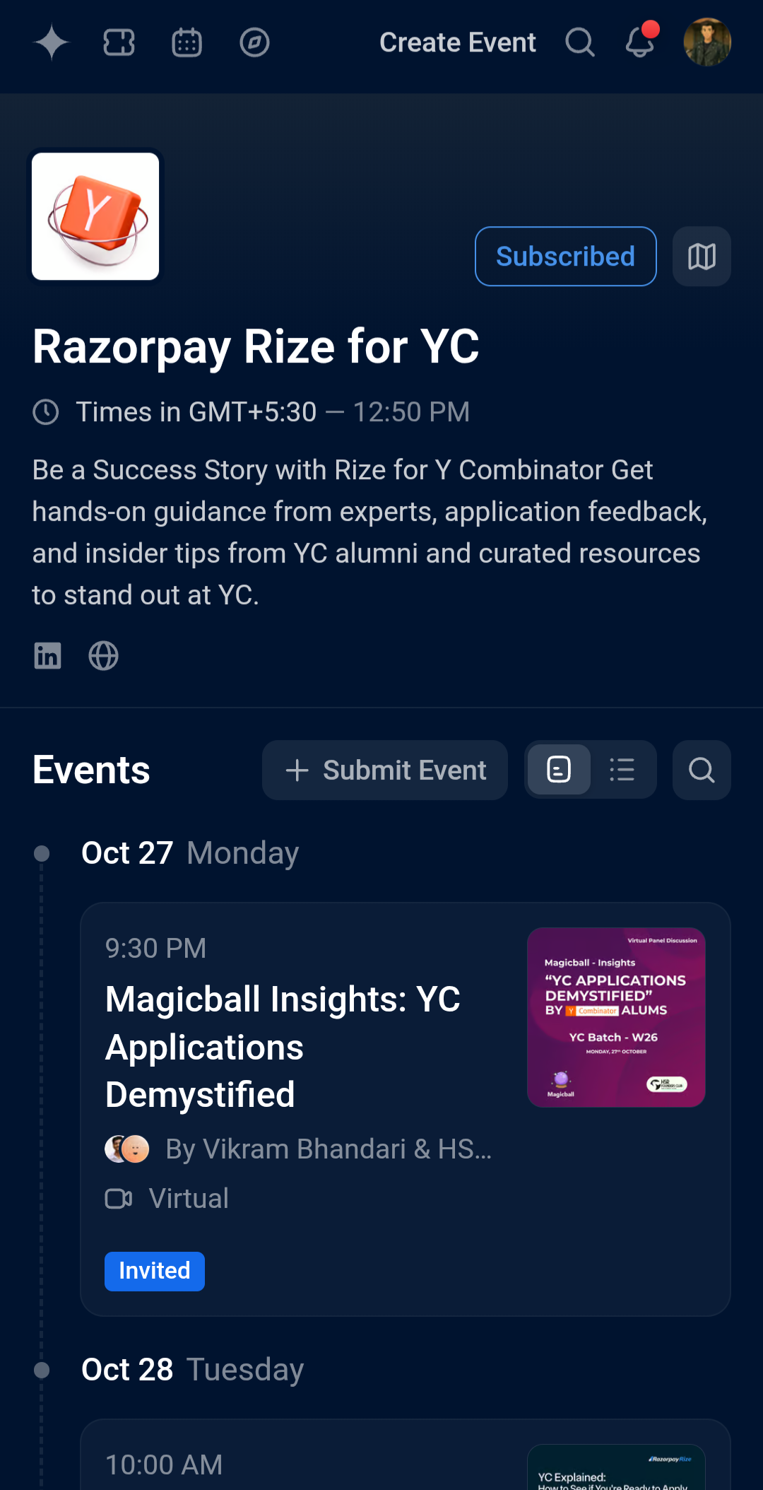 YC W26 deadline is just around the corner, and Razorpay rize is bringing learning sessions specifically curated to help you navigate the YC journey - from your first draft to Demo Day. Register on luma - https://luma.com/rize-for-yc?k=c&utm_source=