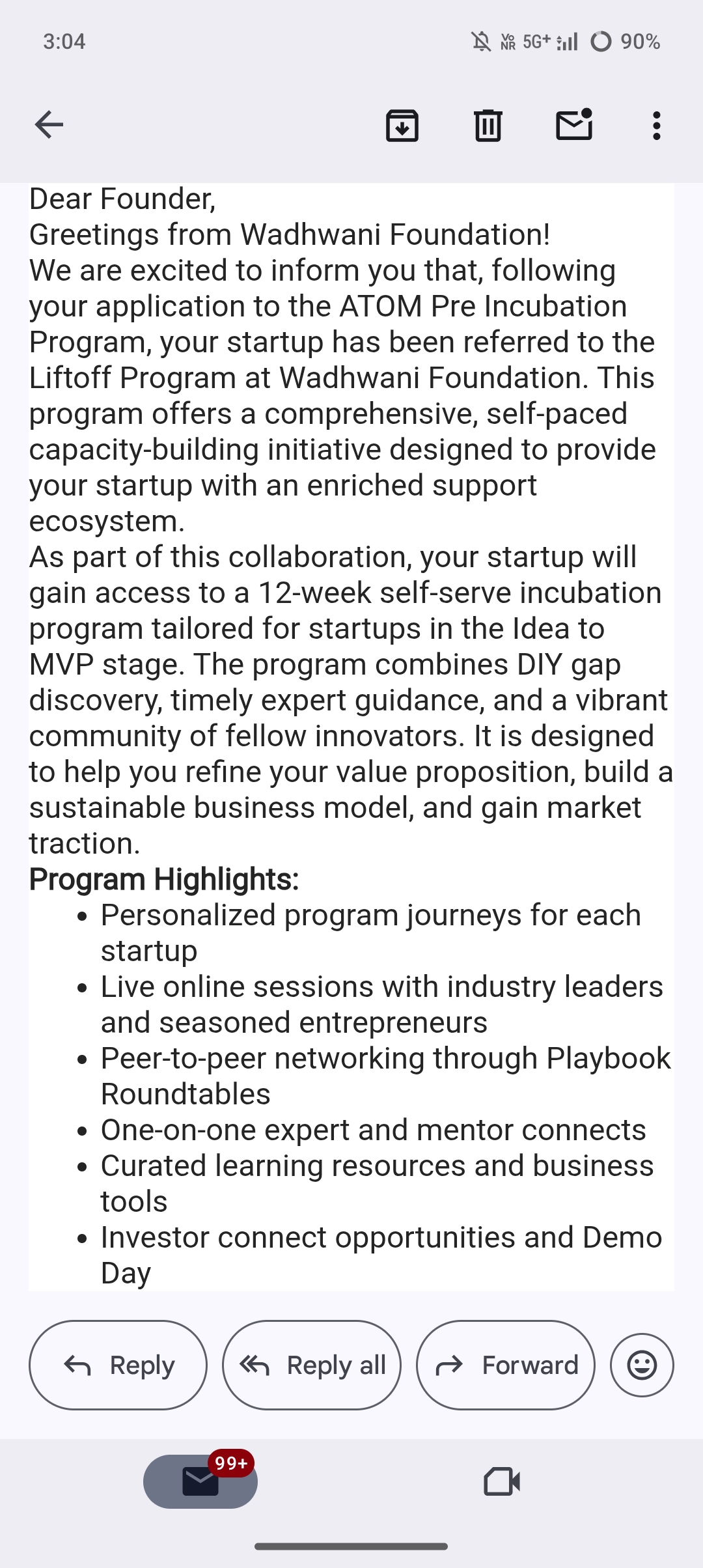 Just received this mail today from Wadhwani Foundations. IIIT Bangalore referred our startup to them for their liftoff program. really excited for this but can someone give me more info?
