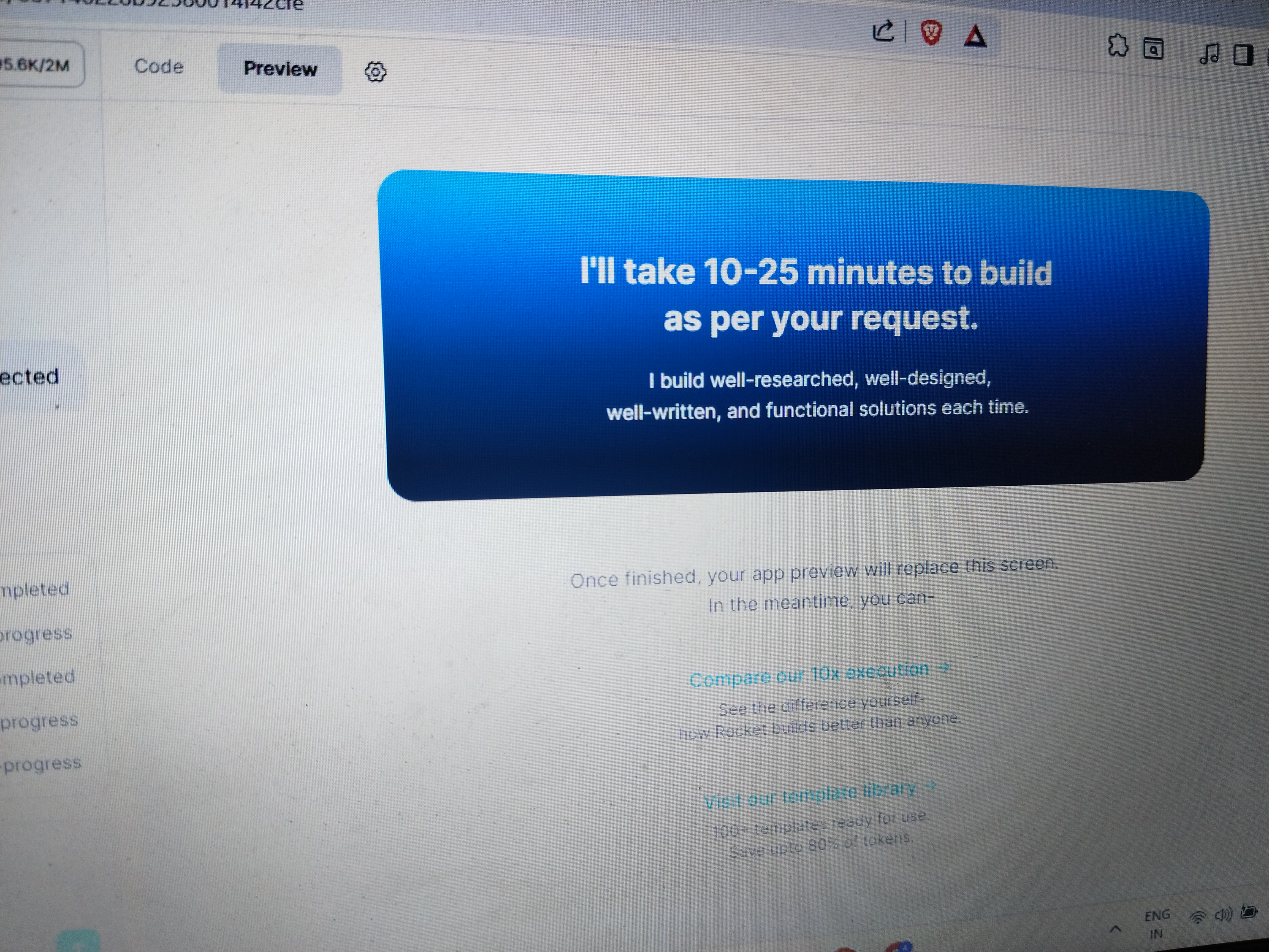 Tried rocket.new today. They must have some connection with Bolt ⚡ . The interface looks same 😕. But this wait period makes no sense. Is someone writing code in background 😮? Maybe they are also using Bolt? 🙃
