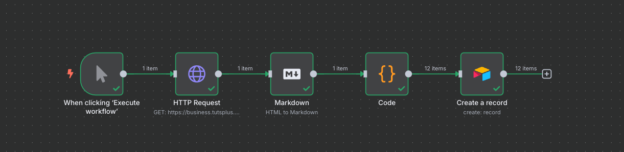 I got lazy. So I built a scrapper. Now I just click a button → scrape blog titles from any website → feed them into my blog generator → hit publish. No more "What should I write today?" Automation isn’t cheating. It’s leverage. 🛠️ Built with [N8N] + Airtable ⚙️ HTML → Markdown → AI-ready 🧠 Input = any site 📰 Output = fresh blog ideas in seconds
