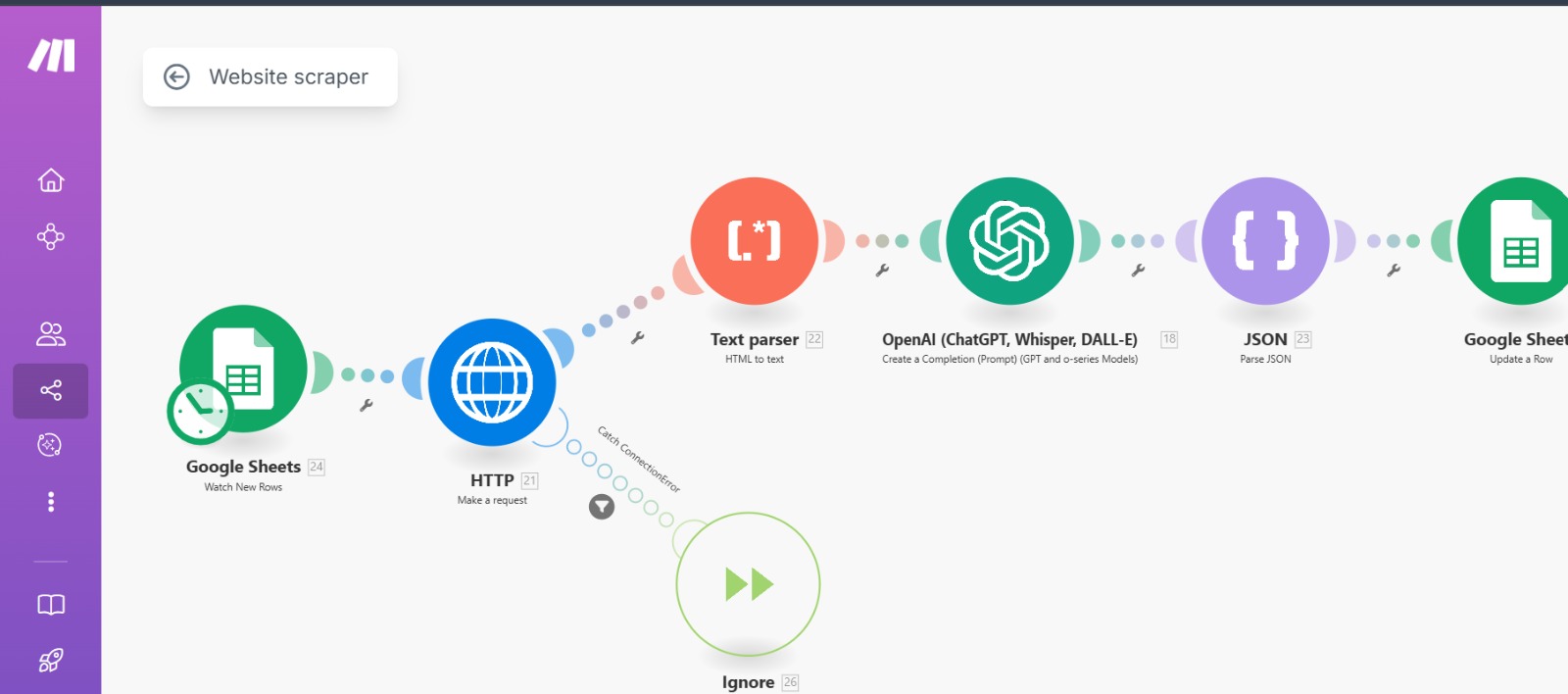 Just built a Website Scraper Automation on Make.com – and it’s a game-changer for anyone doing outreach, prospecting, or lead generation. 📍What it does: It automatically scrapes websites and finds: ✅ Website owner name (where available) ✅ Phone num