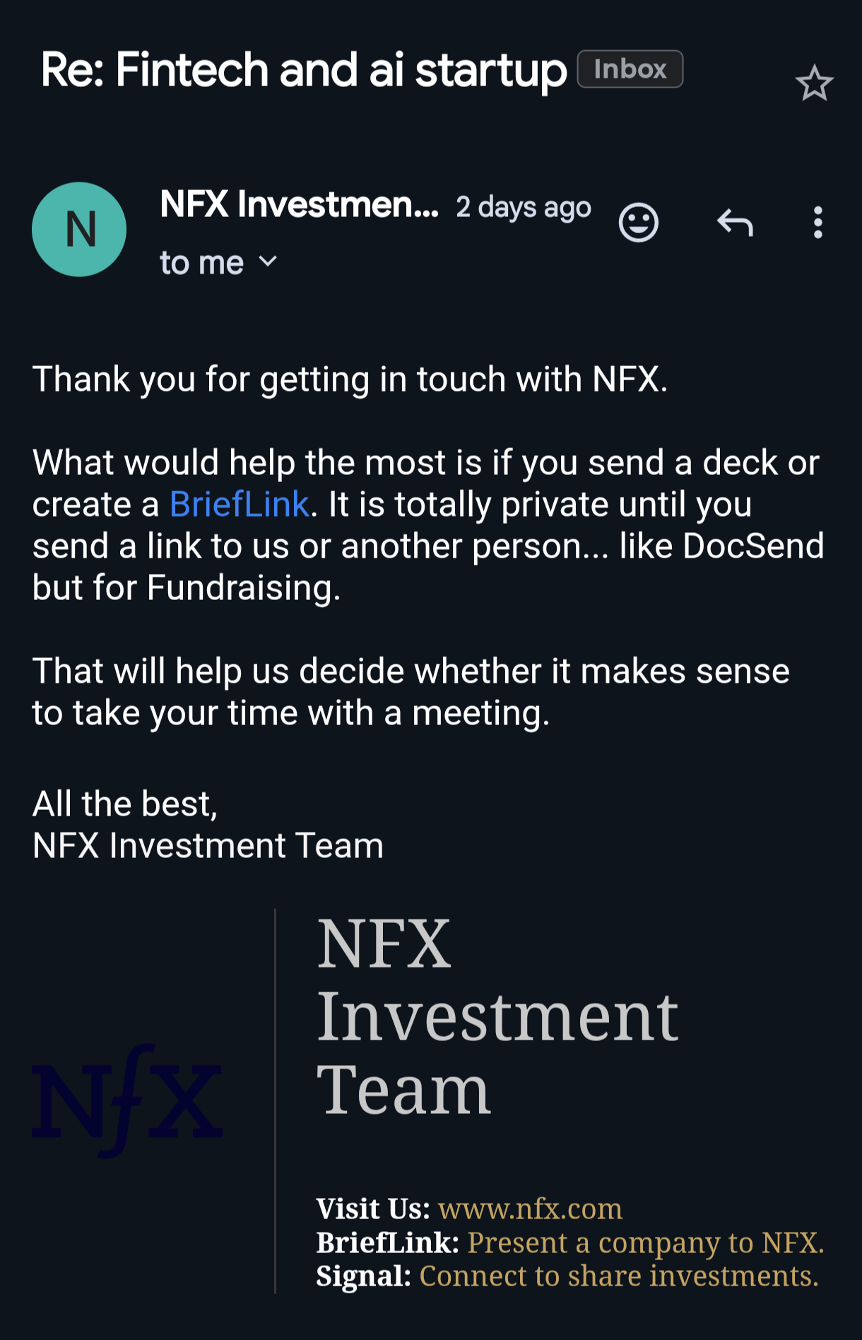 i mailed 10 venture capitals and this is the only one which replied. Mailed my brief link , let's see when they will respond to it