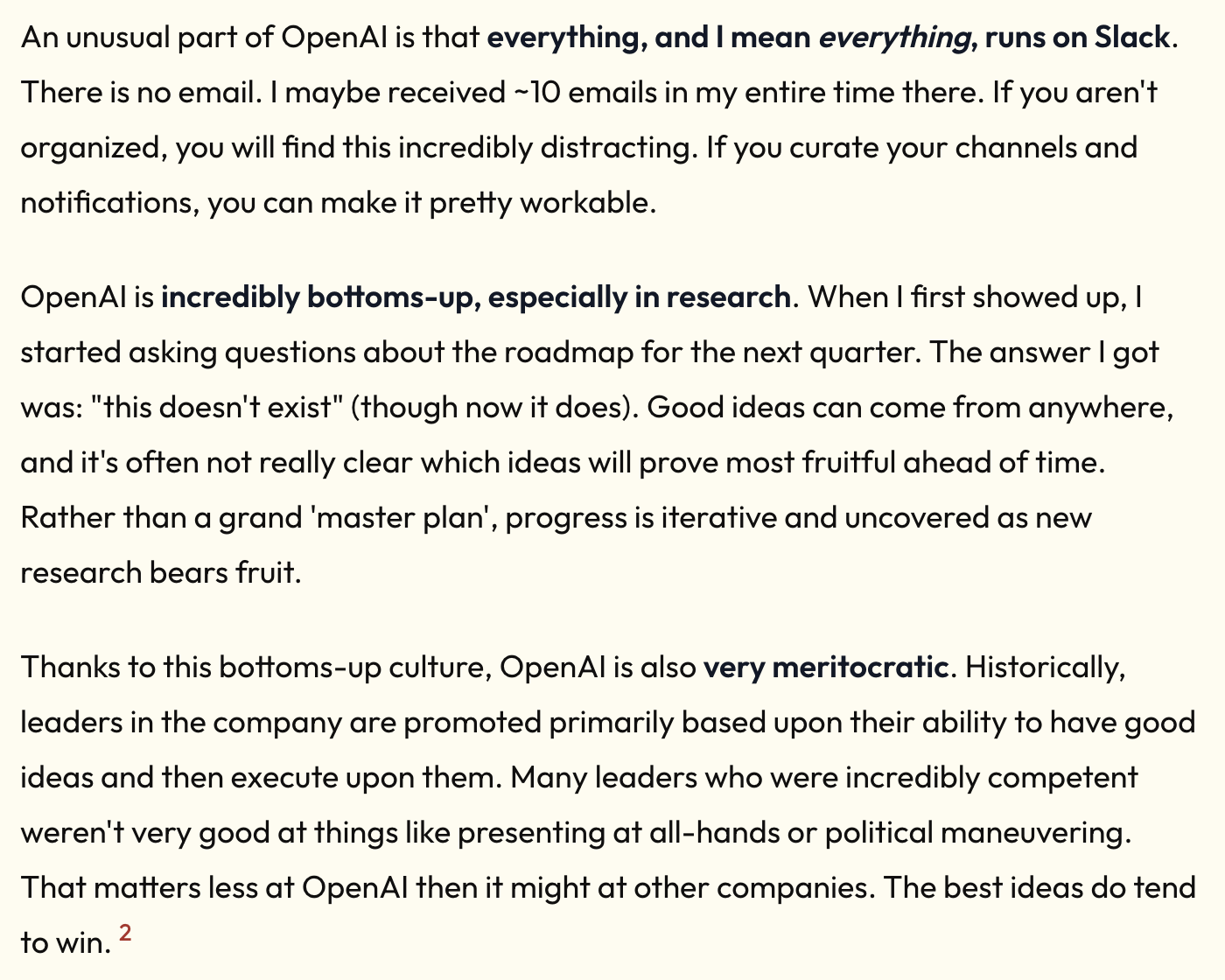 OpenAI, the most viral consumer app in history: – Slack > email – No roadmaps, just ideas – Extreme bias to action Great read.
