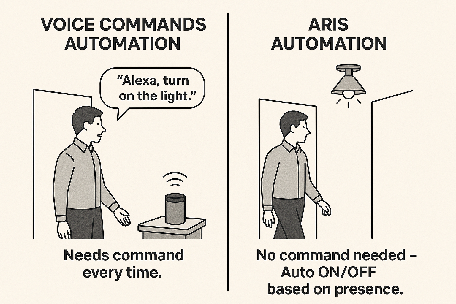 "Aap bolte ho, ARIS samajhta hai 🔄 Voice commands chhodo, ab smart home ka asli matlab samjho! Na internet chahiye, na awaaz – ARIS bas samajhta hai aapki presence aur routine. Comfort, speed, aur intelligence – sab kuch ek system mein!"