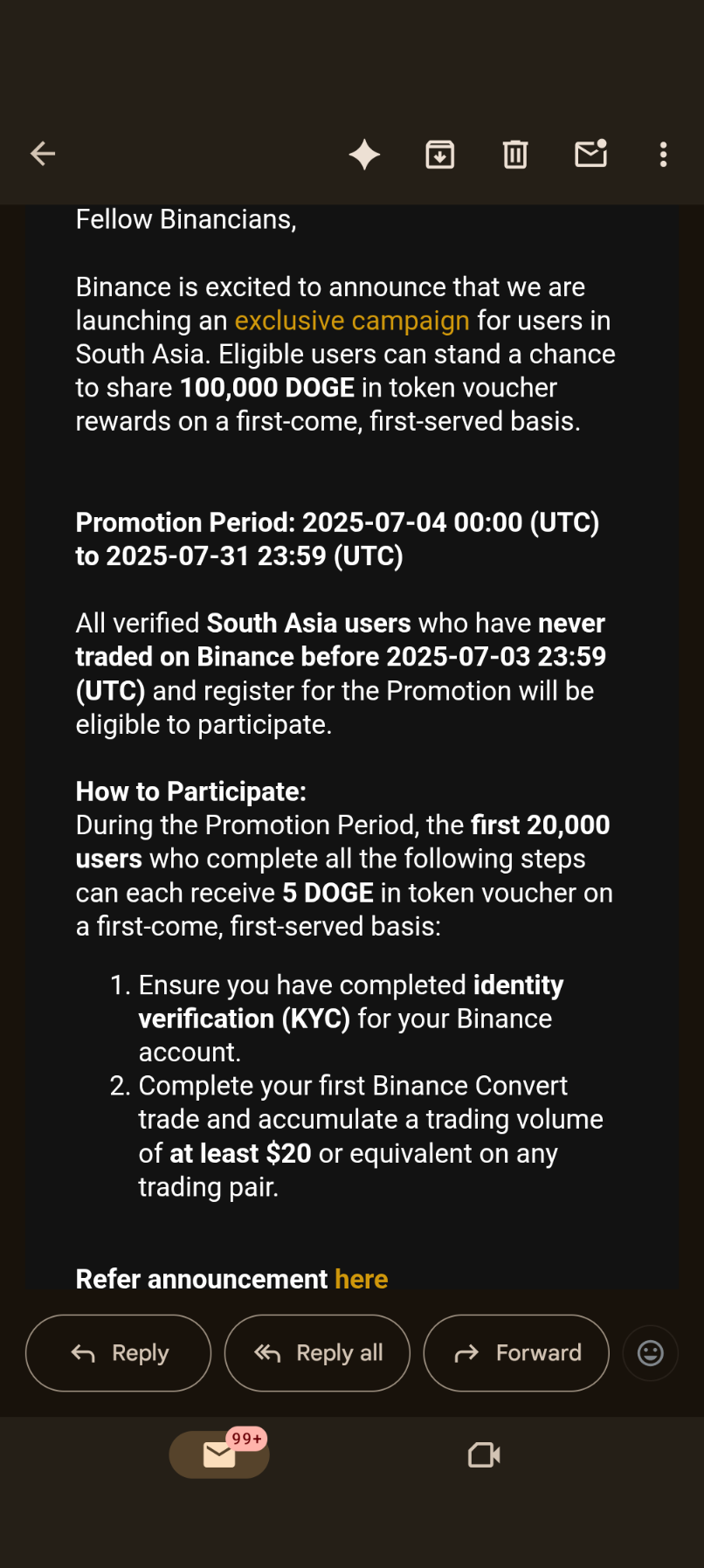 How stupid is this promotional offer from binance. They say , do the list of things we tell you to do, out of which one is to spend 20$ on trade . If at all one finishes all the tasks , then Binance would give you 5 Doge for free . PS :: One Doge cost 0.2 $ and 5 Doge costs 1 $. I feel, some of these big corporations and institutions think people are just super dumb and jump with excitement on seeing this word FREE