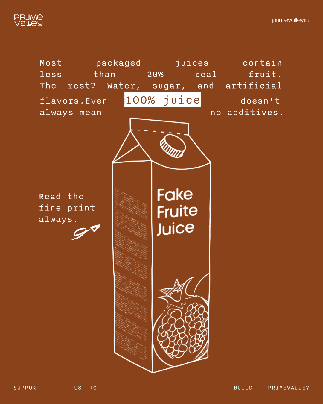 Think twice before calling it “healthy.” Most juices are just sugar water in disguise. We're not here to scare — just to inform. Support honest food. Support real change.