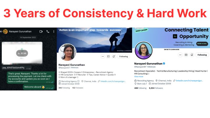 3 years. 3 sessions. 1 incredible journey. Exactly three years ago, Narayani decided to invest in building her personal brand on X (formerly Twitter). Back then, she had just 152 followers. Today? She stands at over 6,300 followers. More important