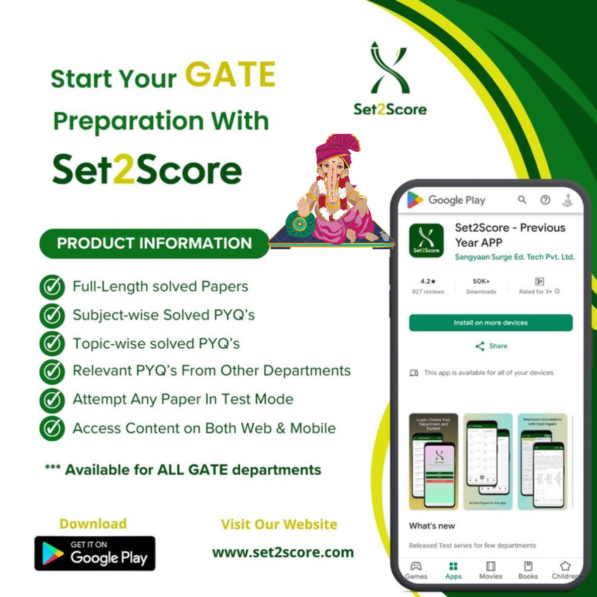 This Ganesh Chaturthi ๐, Set2Score has completed 1L+ downloads. On this auspicious day, we are providing all the PYQs and Test Series products at special discounted prices. What's Included ? โณ Access to 35+ Previous Year Question Papers (PYQ) โ s