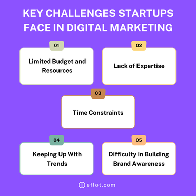Key Challenges Startups Face in Digital Marketing - Eflot Startups often find it hard to stand out online because they have limited resources, little experience, and strong competition. Many are unsure which strategies will work best or how to reach