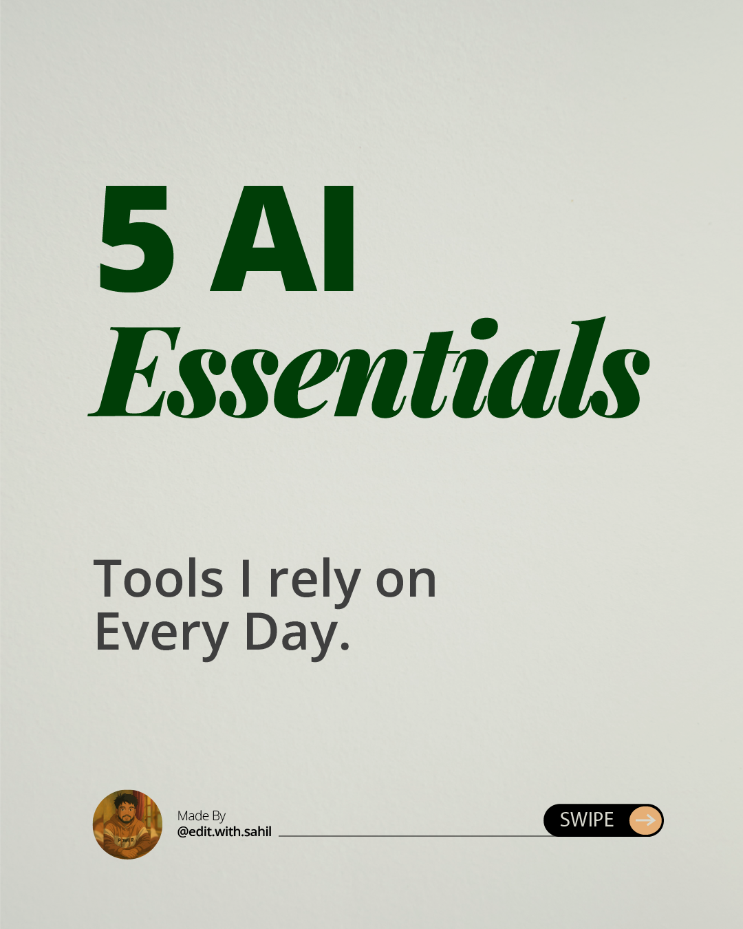 Do you use Ai to speed up your workflow? As an Editor these are 5 Essentials that has reduced my work time by 60% . Which ones do you use? https://www.instagram.com/p/DMYHQT8TrL0/?img_index=3&igsh=NTFqangxZ2Fib3Qx