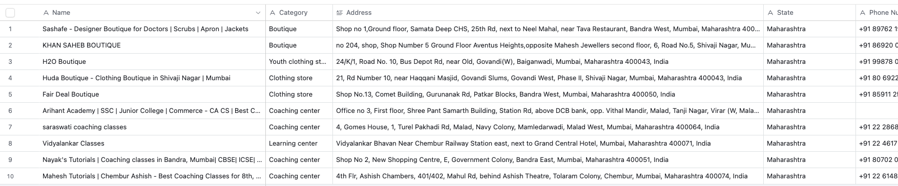 Another day, another automation. This one scrapes Google Maps business data and pushes it straight into Airtable, no manual effort, no fluff. ⚙️ Built with: - Apify Actor for location scraping - Field mapping via N8N - Airtable for structured storage 👀 What it grabs: - Business name - Category - Address - State - Contact number 🚀 Result? Clean data, auto-populated, and ready to use, ther it's for outreach, lead generation, or just organized obsession. Built it once. Let it run forever.