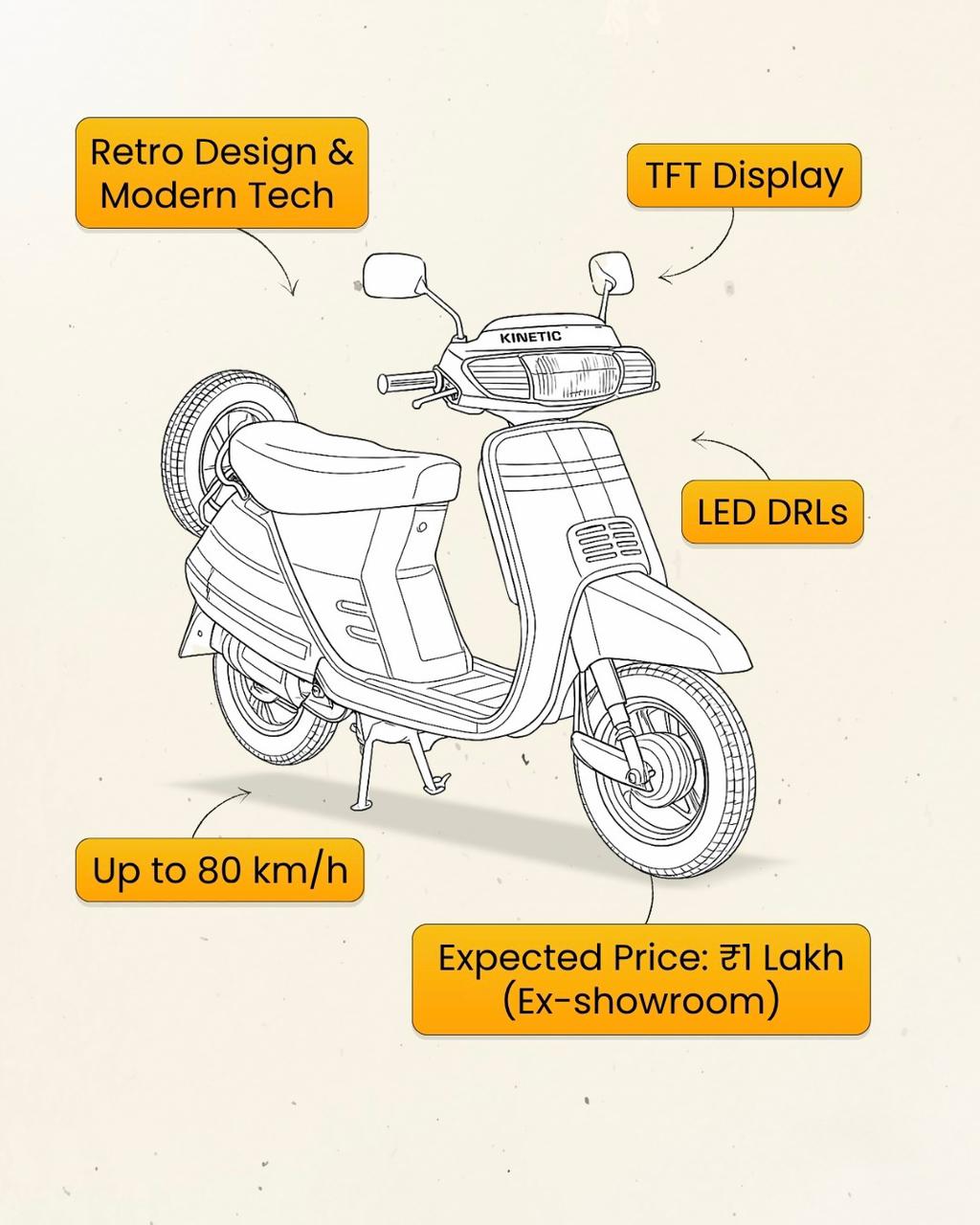 The icon returns — with a charge. kinetic.india is all set to reintroduce the legendary DX, this time as an electric scooter. Slated for launch on July 28, the new Kinetic DX blends nostalgic design with modern electric mobility. Think square LED headlamps, 12-inch wheels, and a classic boxy frame — all powered by a hub motor that promises quiet performance and everyday practicality. Expected to be priced around ₹1 lakh, the DX aims to strike a balance between family-friendly commuting and retro appeal — a smart move in India’s growing EV landscape. Will the DX reboot strike the right chord with both old fans and new-age riders?