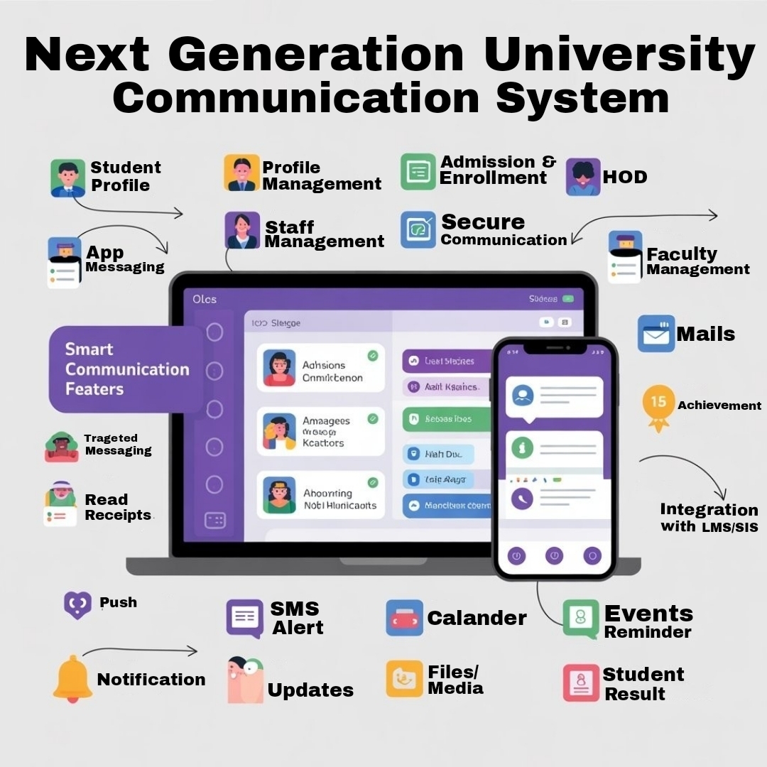 Revolutionizing University Communication with Smart College system Our latest solution transforms campus communication, delivering: • Real-time notifications across channels • Targeted messaging for students, faculty, and admins • Secure in