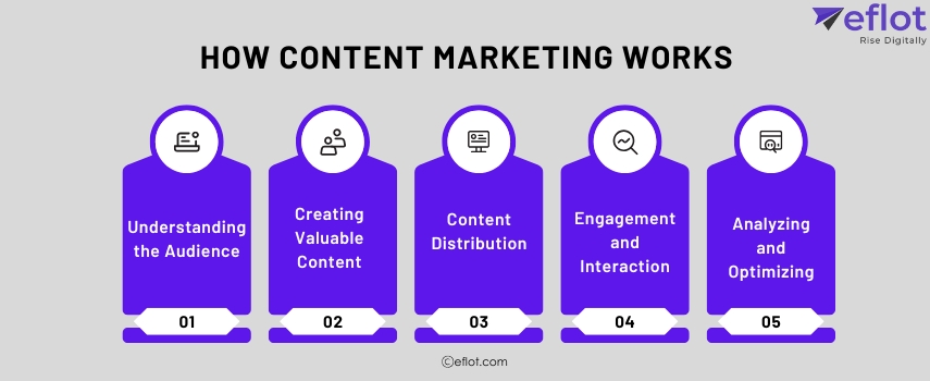 How Content Marketing Works | Eflot Content marketing works by creating and sharing valuable, relevant, and engaging content to attract and retain a target audience. It builds trust, enhances brand awareness, and drives conversions by addressing the