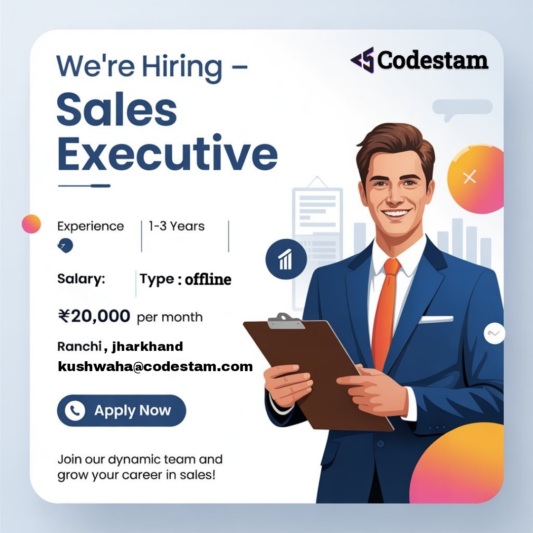 We’re Hiring: Sales Executive • Location: Remote/Hybrid • ₹20,000 + Incentives • Exp: 2-3 Yrs If you’re a go-getter who loves closing deals, join us! Apply: kushwaha@codestam.com