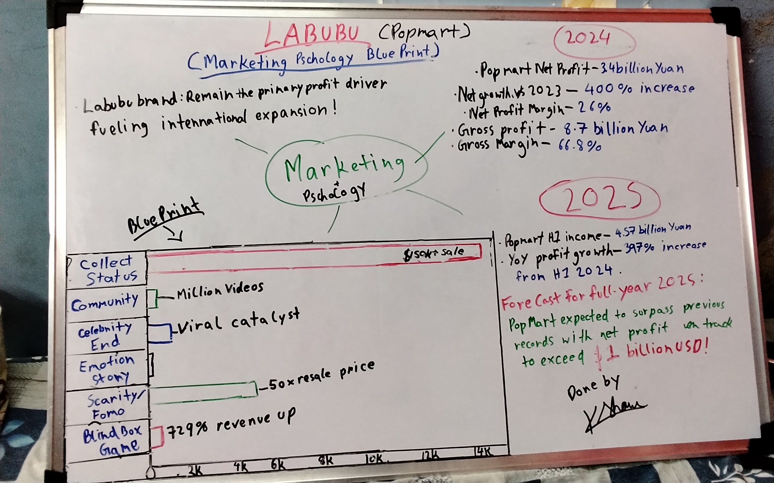 ⚡ What if I told you a 12-year-old just mapped a $1B+ growth playbook… on a whiteboard? No slides. No jargon. Just a marker + raw psychology. Here’s what I decoded from that whiteboard: 🔒 Scarcity & FOMO → 50x resale prices 🎲 Blind Box Game → 729