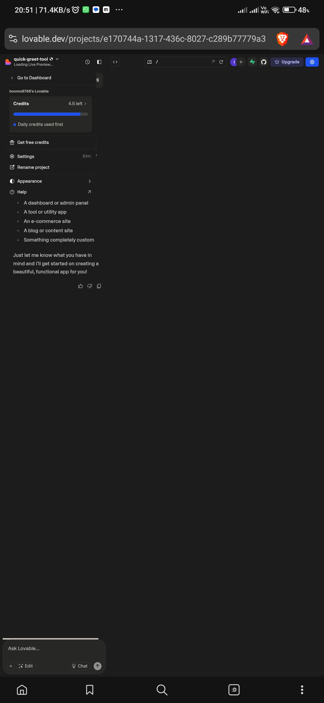 Made a new account on Lovable and realized Agent Mode is just always on now โ no way to turn it off. Not a huge fan of that change, to be honest. ๐