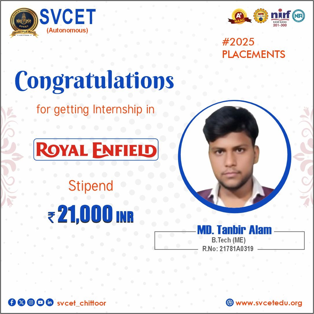 Hi Everyone! 👋 I'm really excited to share some big news with you all — I’ve been selected to join Royal Enfield Company, Chennai as a Production Engineer – Development Technician! 🚀🏍️ #RoyalEnfield #DreamJob #Gratitude #NewBeginning #SVCET 💼 About Me & My Role: I’m appointed in the Manufacturing Production Line Department as a: 🔧 Production Engineer Technician ⚙️ CNC, VMC & HMC Expert 🛠️ Machine Fixtures Specialist 🧠 Problem Solver & Manufacturing Innovation Enthusiast 🙏 Gratitude: I’m incredibly thankful to all my school teachers, and the faculty, HOD, and Principal of Sri Venkateswara Collegeof Engineering and Technology for shaping my journey and helping me reach this level. A heartfelt thanks to my parents and friends — your constant support and encouragement have been the backbone of my success This is just the beginning — I'm excited and ready for what lies ahead with Royal Enfield! 💪