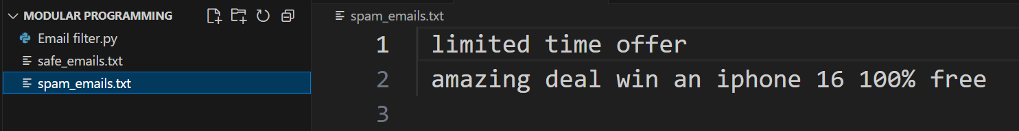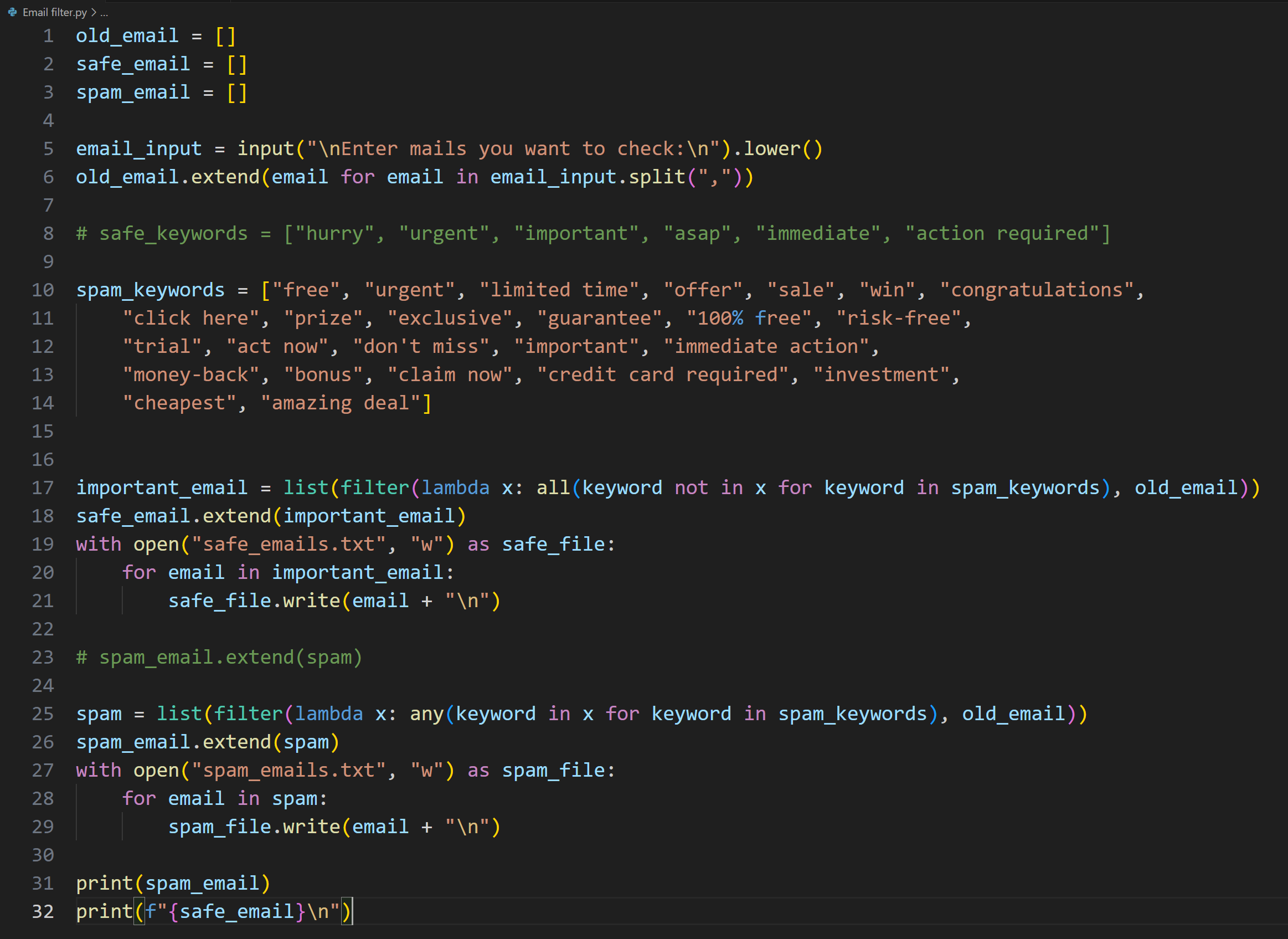 Day 17 of learning python as a beginner. Topic: lambda functions + email filter Lambda functions are a single line anonymous function without using the usual def key word. All function: checks whether all the key words (spam_keywords) are present