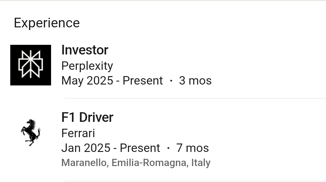 TIL that Lewis Hamilton, the legendary F1 Driver is also an investor in Perplexity.