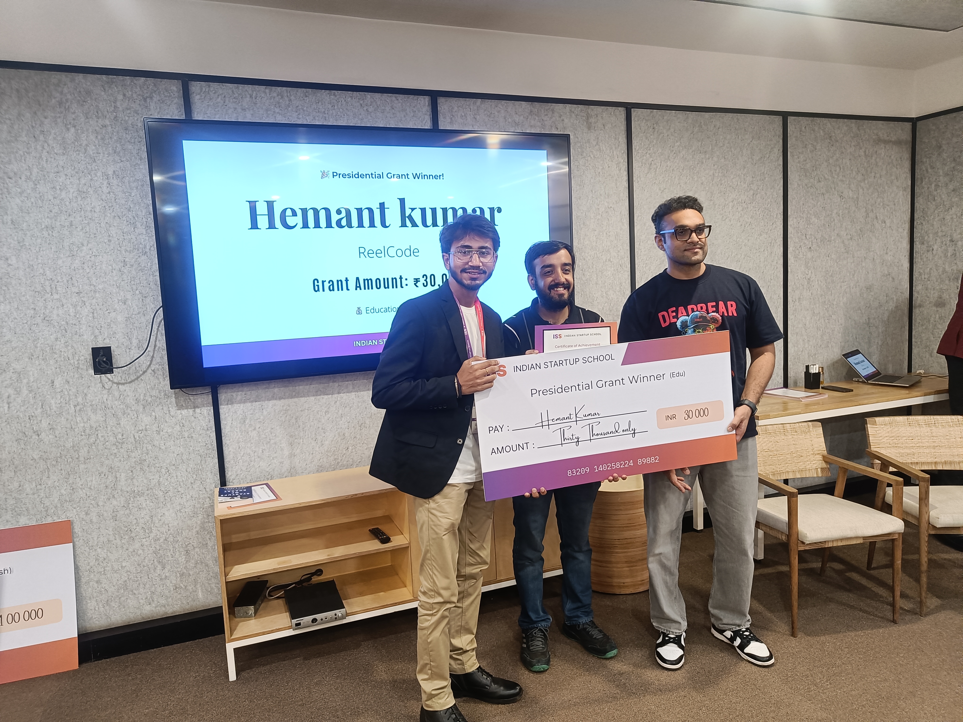 Excited to share that my venture Reelcode received equity Free grant from Indian startup school , gurgaon on 5th of July 2025 this moment was the stepping stone for Reelcode and for me as well as a founder received the grant by sharing a moment with