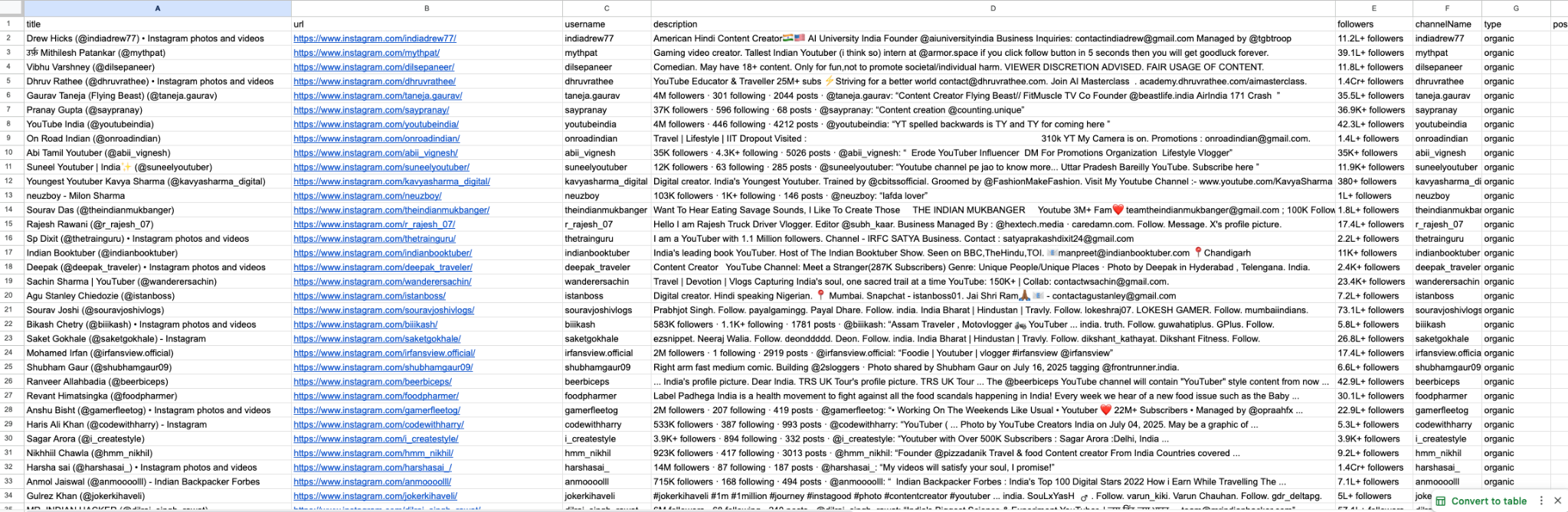 Another day, another automation. Today’s build? A bot that scrapes Google to find creators… and pulls their Instagram handles straight into a Google Sheet. 📥 What it collects: ✅ Instagram usernames ✅ Bio & description ✅ Followers count ✅ Channel name & category 🎯 Perfect for lead generation, outreach, or influencer research all on autopilot. Another layer of manual work, gone for good.