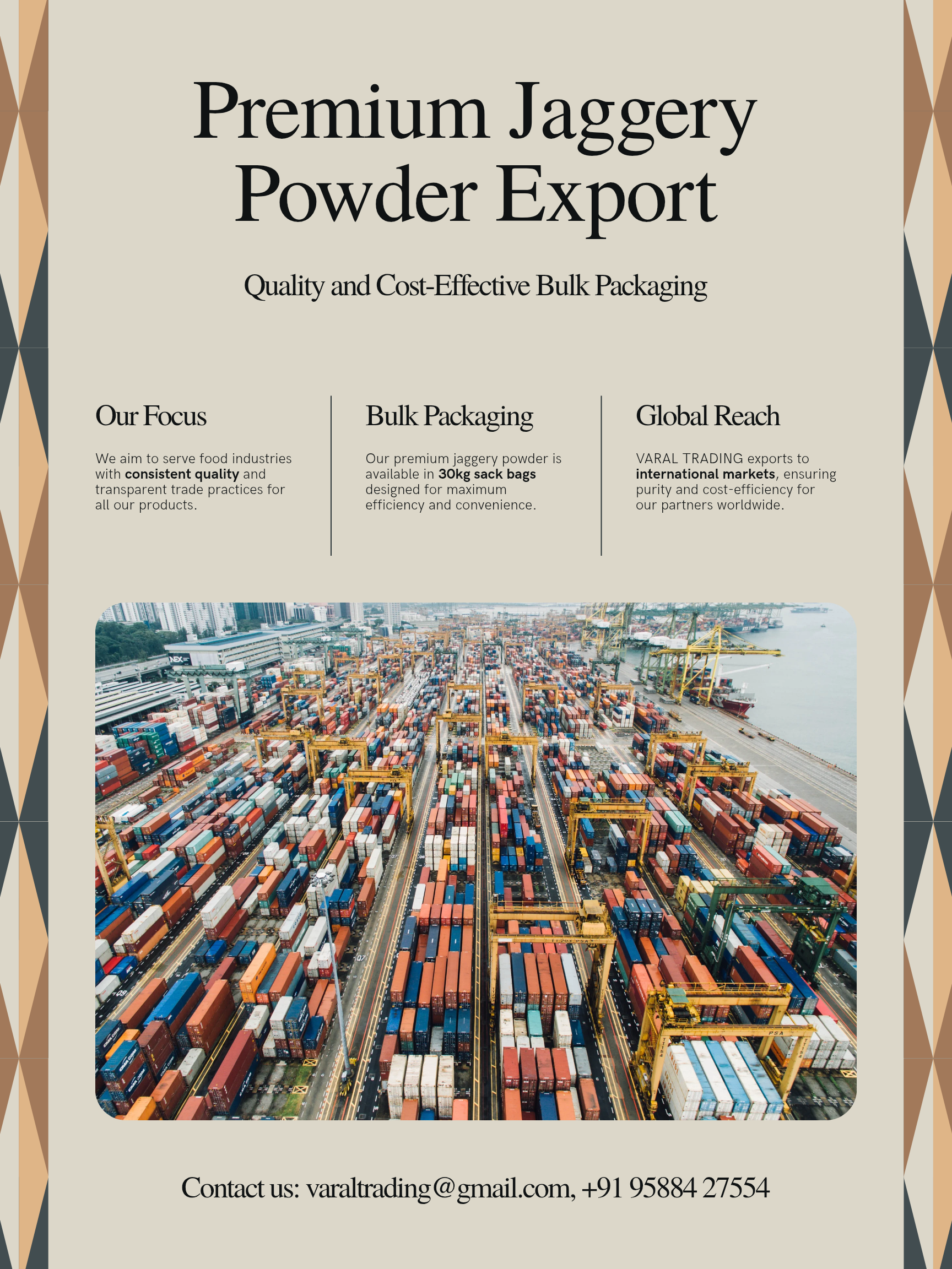 Welcome to VARAL TRADING 🇮🇳 Your Trusted Source for Premium Jaggery Powder Export ✅ Bulk Packaging Available 📦 30kg Sack Bags – Ideal for wholesalers, food processors, and industrial buyers. 🌐 We export globally with a strong focus on: – Purity – Cost-efficiency – Transparent trade practices – Consistent product quality 💼 Serving: Food industries, confectionery makers, sweet manufacturers, spice blenders, and global importers. 📬 Contact Us Today: 📧 Email: varaltrading@gmail.com 📱 WhatsApp: +91 95884 27554 🔖 Brand: VARAL TRADING #healthyeating #farmtotable #foodindustry #exportquality #ecofriendlypackaging #businessopportunities #exportimport #coconutsugar #healthproducts #foodprocessing #jaggery #internationaltrade #markettrends #sweeteners #organicjaggery #sugaralternatives #nutritionalbenefits #jaggeryexport #sustainableexports #agroproducts #naturalsweetener #globaltrade #agriculturalexports #tradeopportunities #asiapacifictrade #indianagriculture #jaggeryexporters