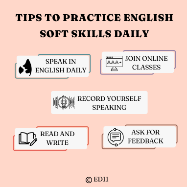 Tips to Practice English Soft Skills Daily - Ed11 Improve your English soft skills daily with simple tips! Practice active listening, clear speaking, and confident body language. Engage in conversations, read aloud, and watch English media to boost fluency. Reflect on interactions to grow. Consistent small efforts lead to big progress. For more info visit: https://ed11.com/blog/spoken-english-class-in-anna-nagar #EnglishSkills #SoftSkills #DailyPractice